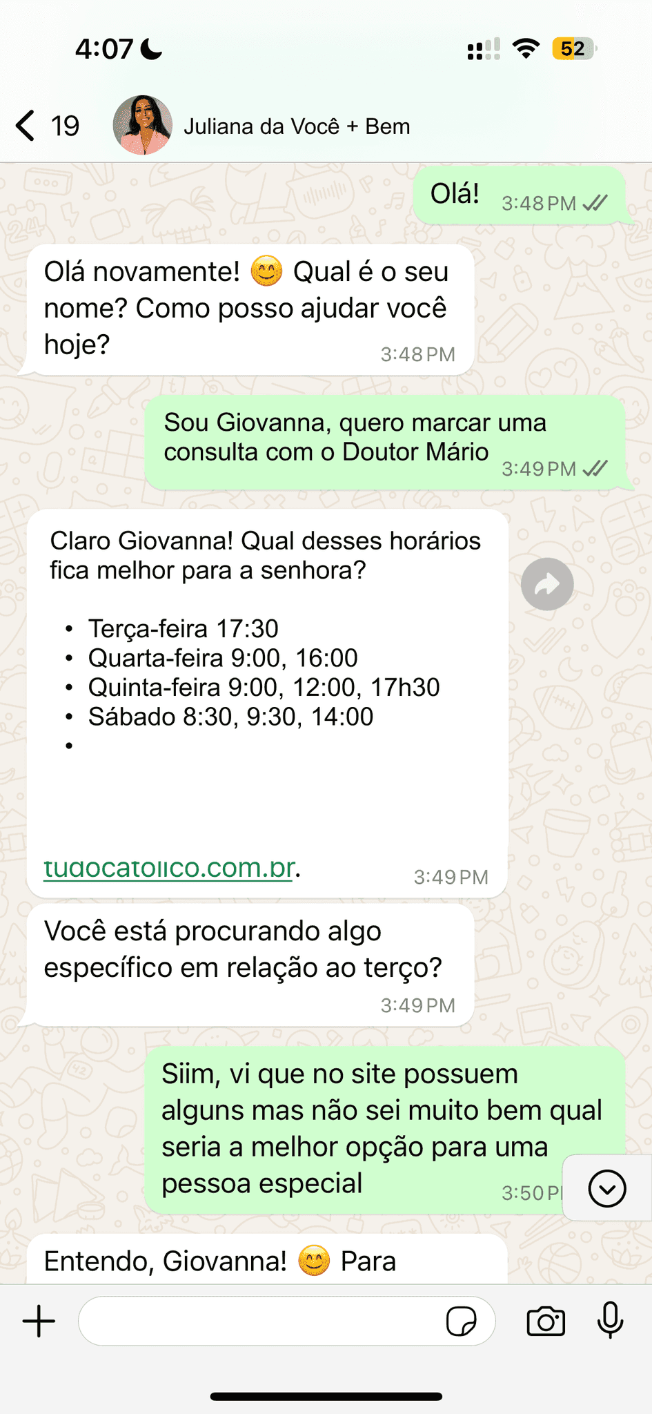 Processos pré-determinados para tirar dúvidas, qualificar leads e fazer agendamentos.